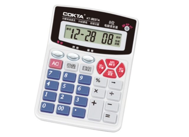 设计直击实用痛点:独立红色验钞键随按随用,收钱对账时无需额外工具就能快速辨真伪,让桌面操作更连贯;12 位高清大屏清晰呈现数据,搭配可调节音量的语音播报,在超市收银的喧闹或办公室的嘈杂中,“看数 + 听数” 双重保障减少算错风险;橙、黑、红三色按键分区明确,存储键、运算键、清屏键各司其职,盲按时凭颜色就能精准定位,操作效率拉满;更有时间查询、24 点益智游戏等实用小功能添彩,双电源(太阳能 + 电池)设计让续航稳定不掉线,无论是办公对账还是日常收银,都能兼顾便捷与可靠