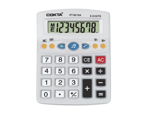 采用 银白简约机身,搭配 彩色功能键矩阵(黄色 MC/MR、蓝色音乐键、橙色 % 键,红色 AC 键醒目区隔);8 位 LCD 屏保障数字清晰认读 。功能端,蓝色音乐键 为运算增添交互趣味(触发操作提示音);AC 实现 全局运算清零,CE 精准修正 单步输入误差;MC/MR/M⁻/M⁺ 构建数据暂存体系,适配多任务中间值存储;集成 % 比例运算、√ 开方求解、+/- 符号切换 及基础四则运算,兼顾办公效率与轻量娱乐属性 。